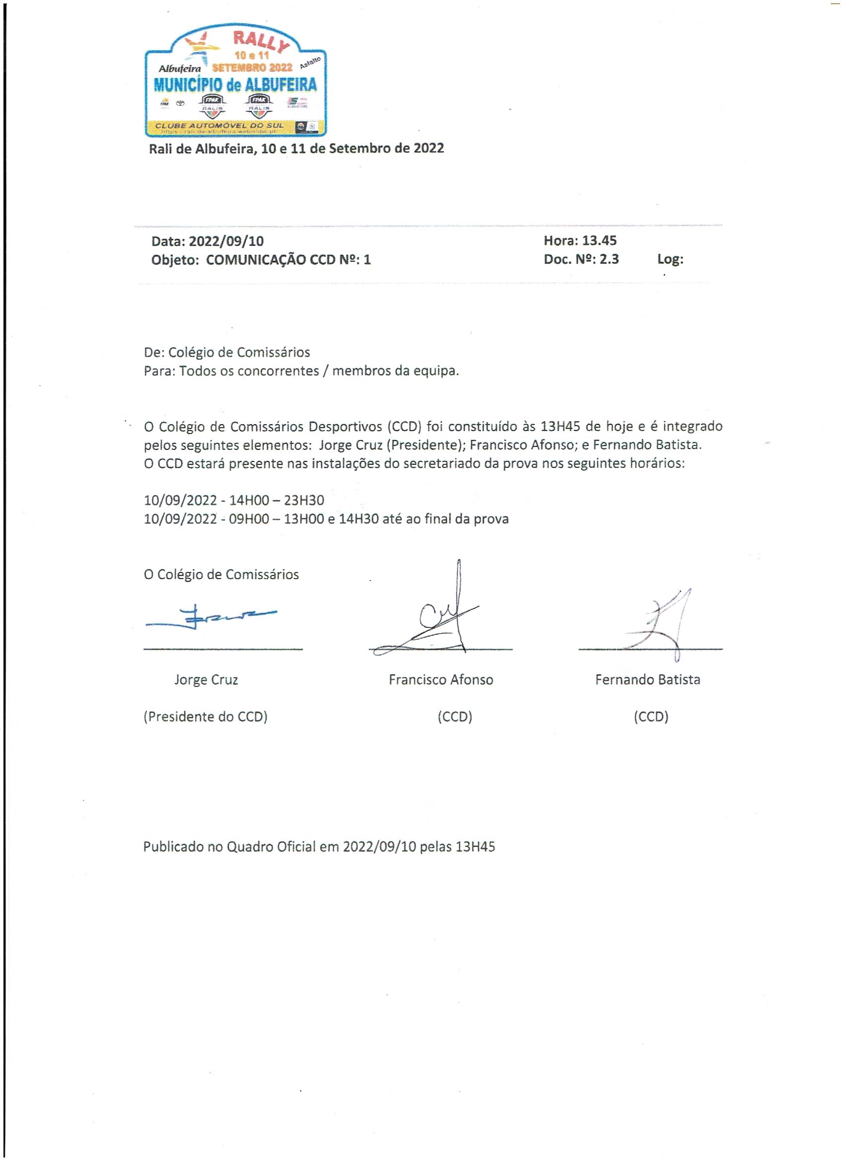 Comunicaçãonº 1 Do Ccd 001