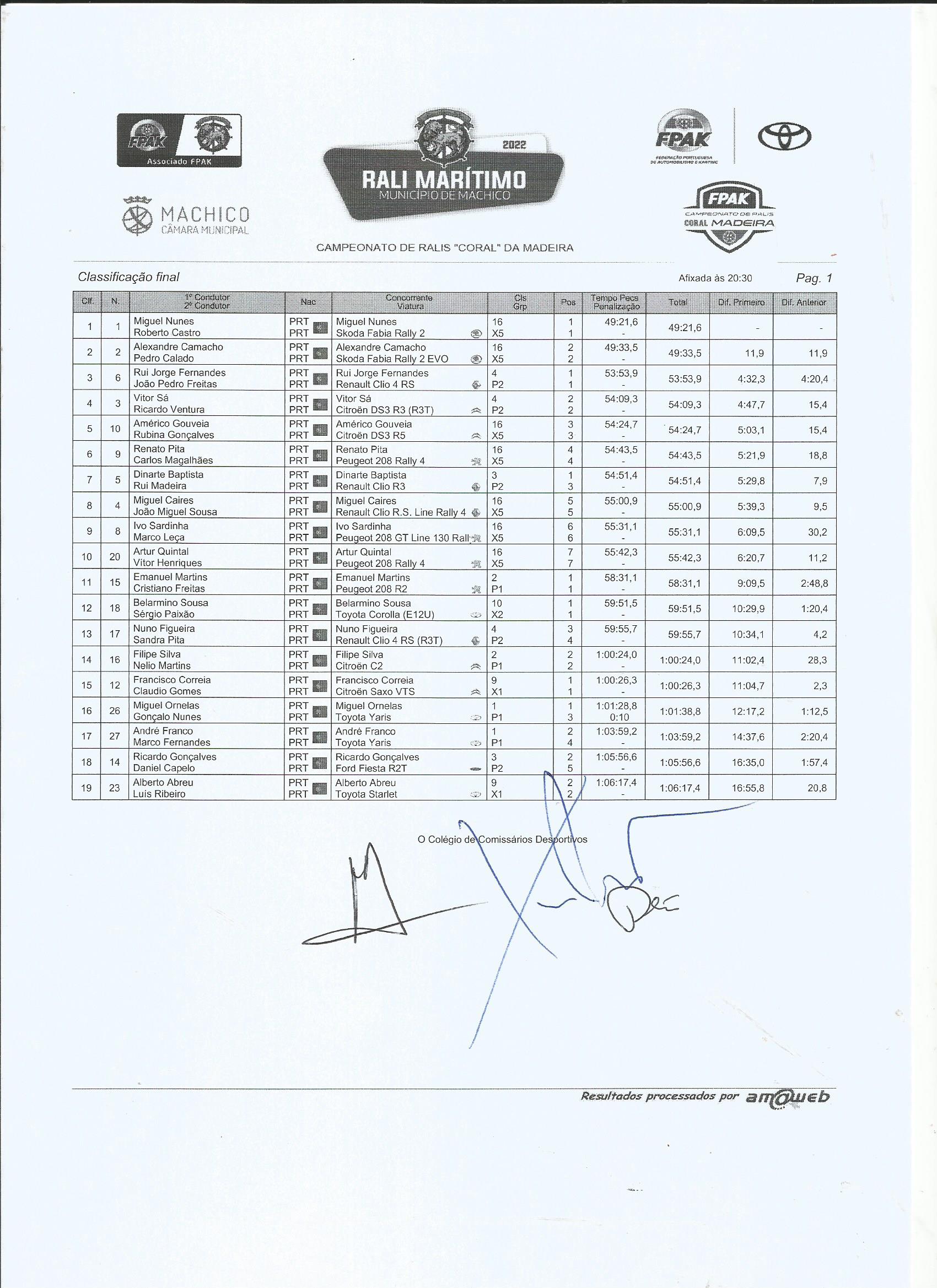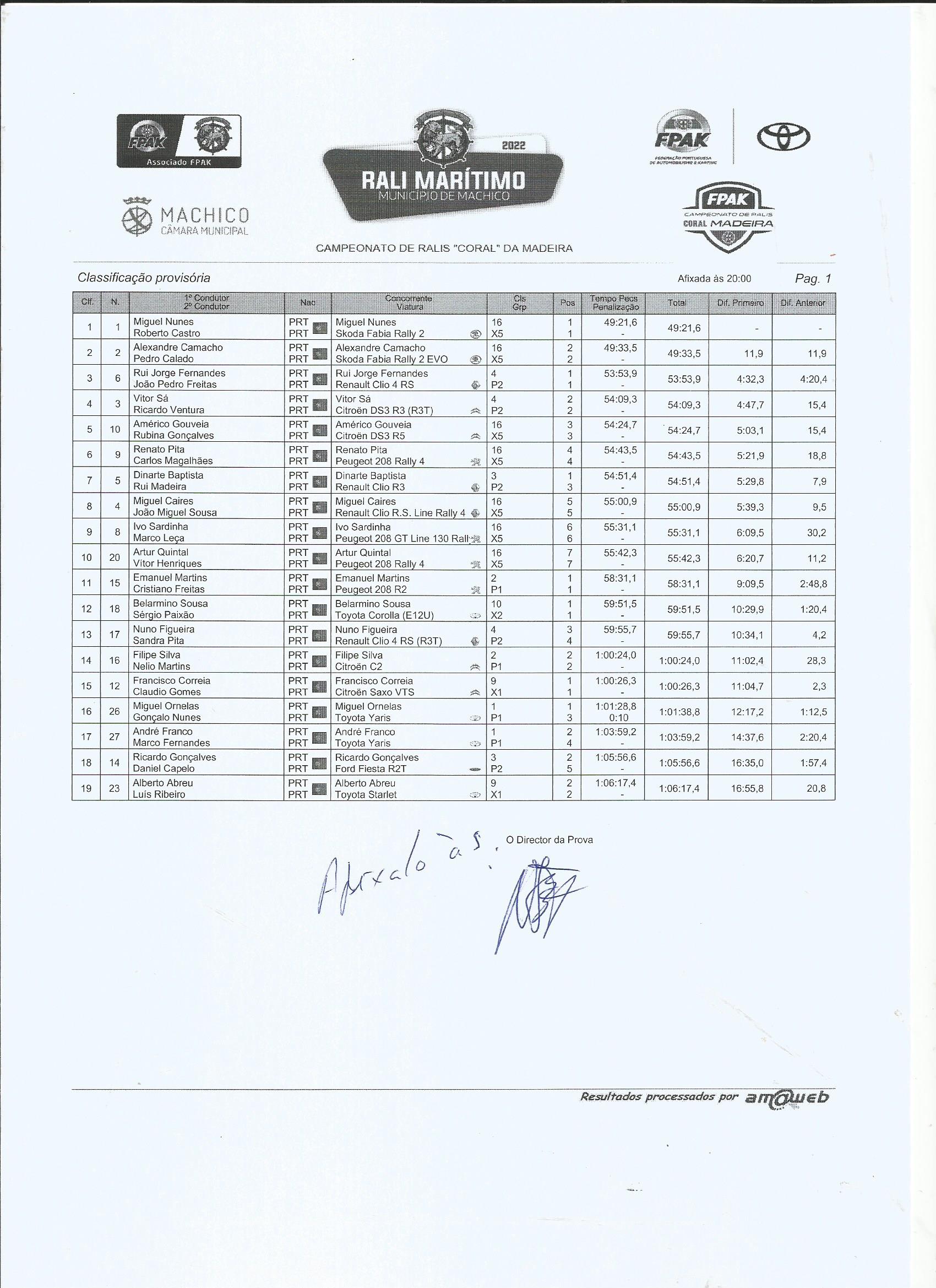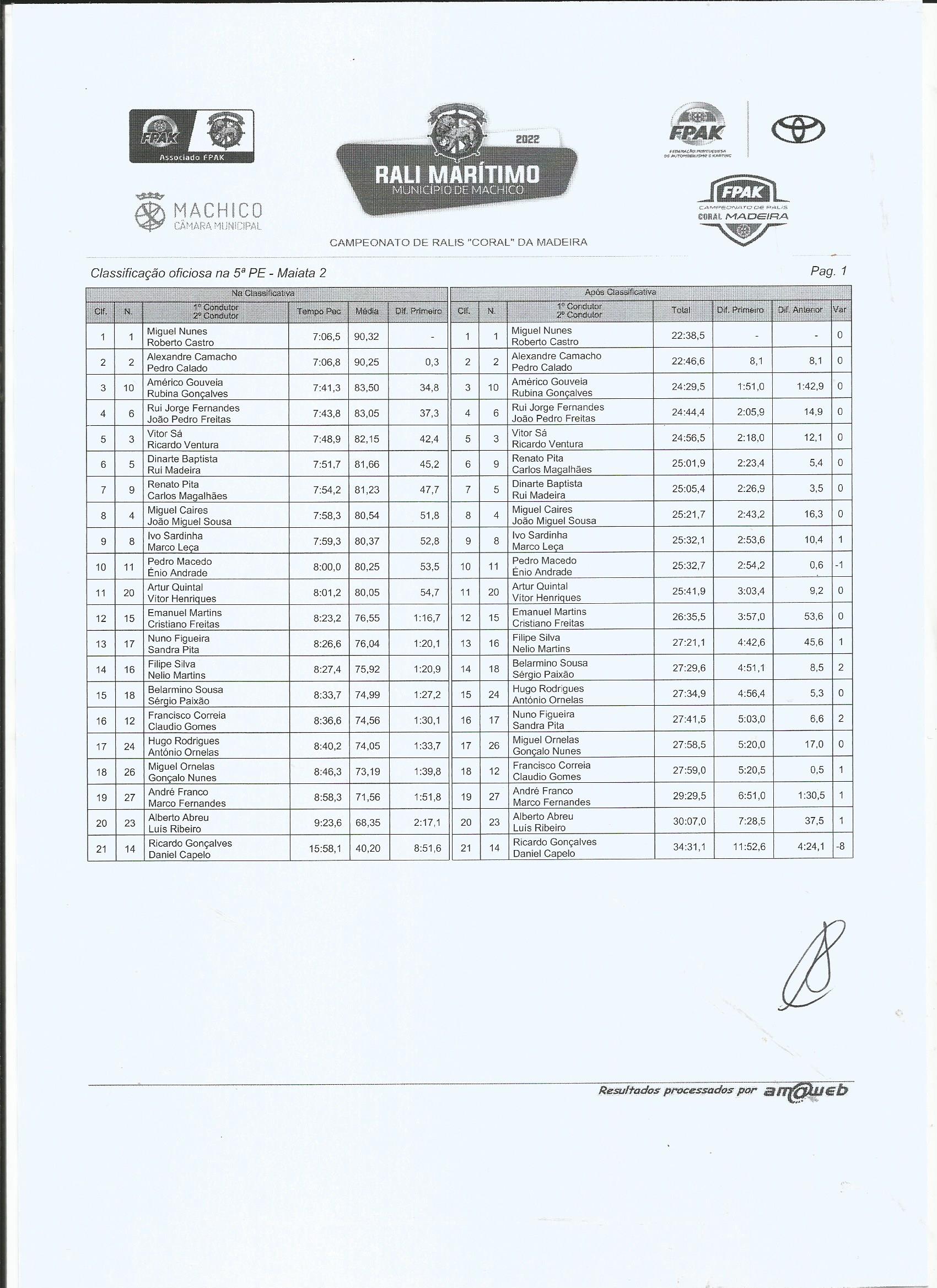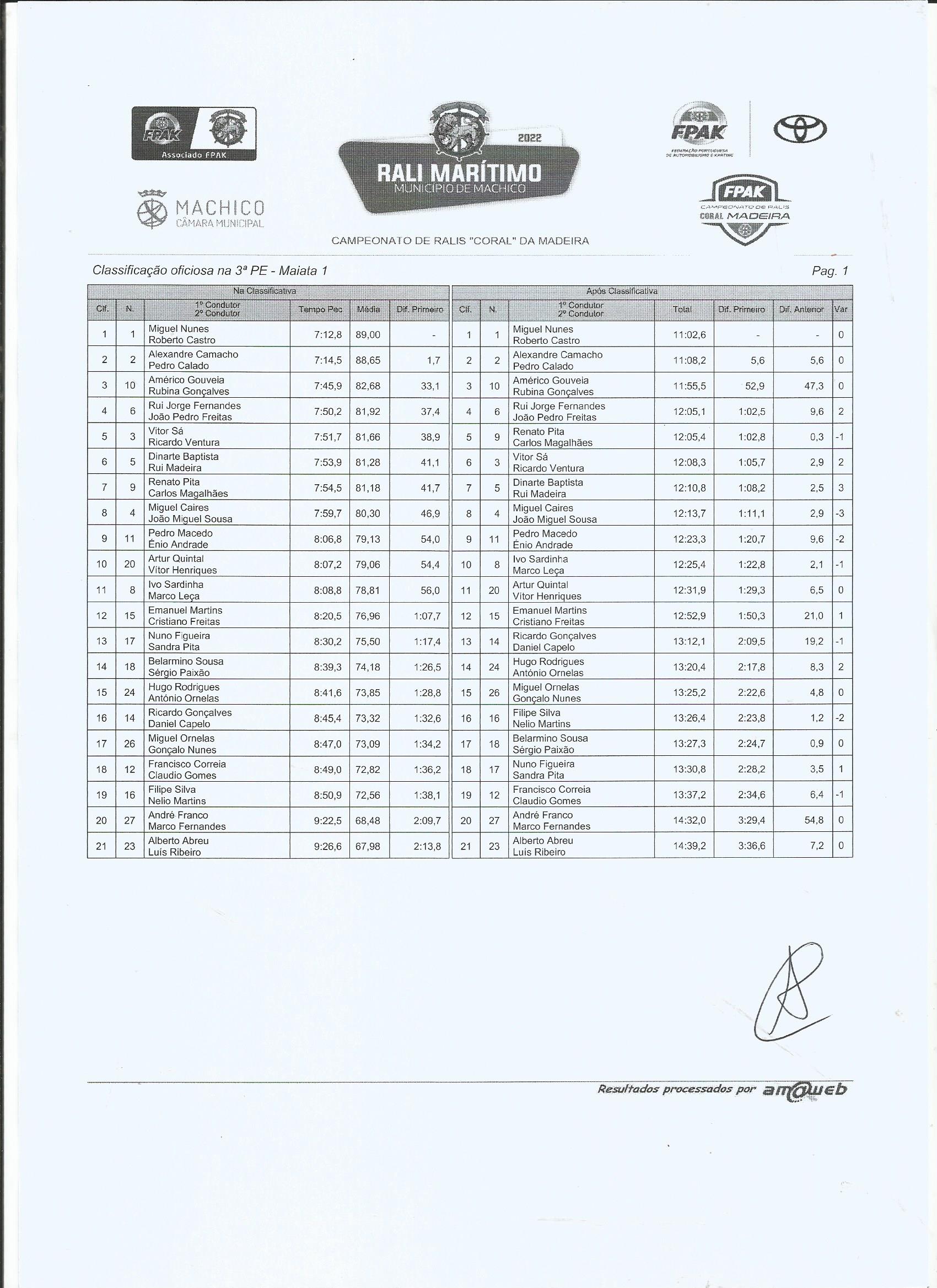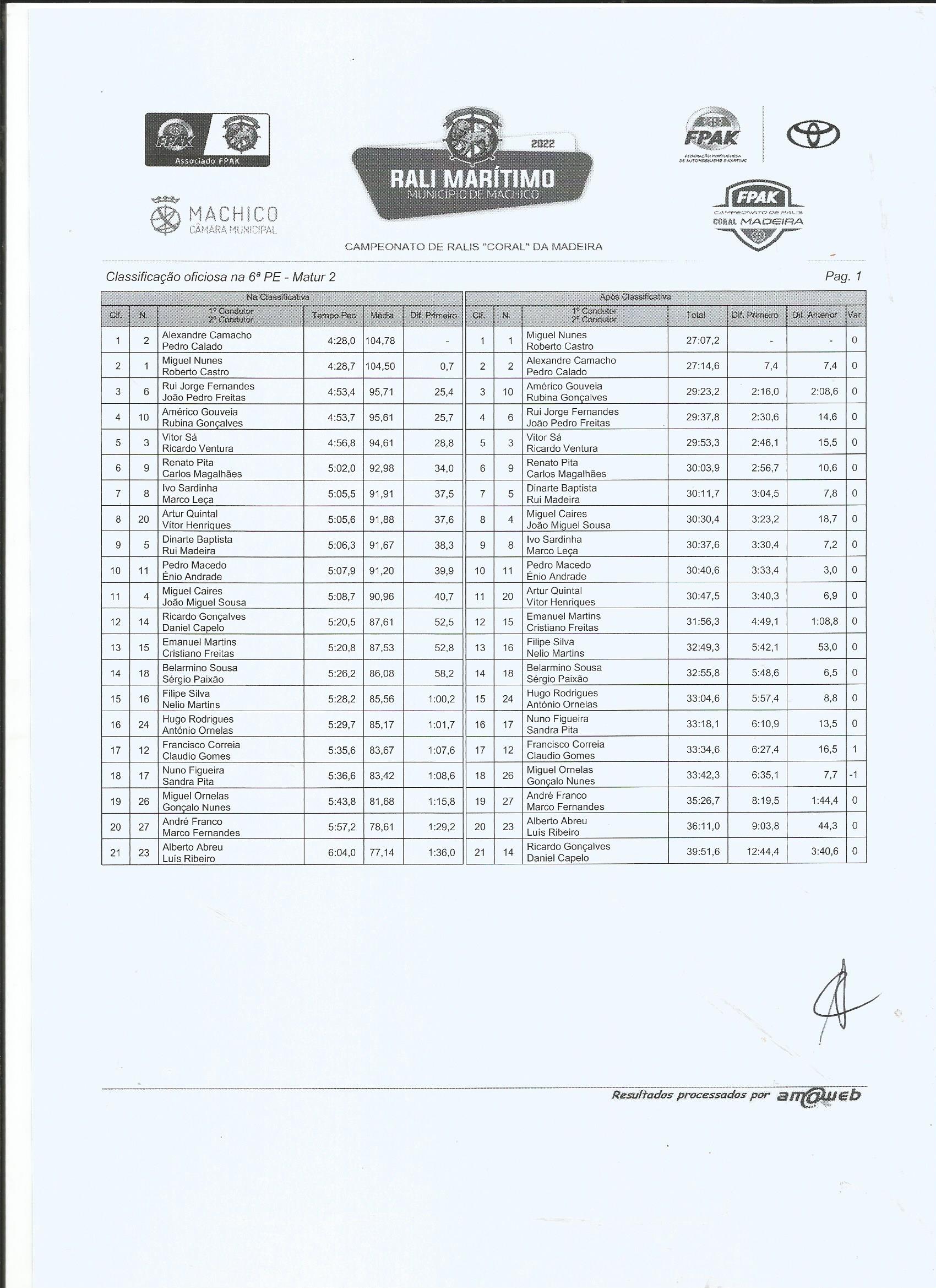 Classificação Oficiosa Na 2ª Pe Cidade De Machico 2