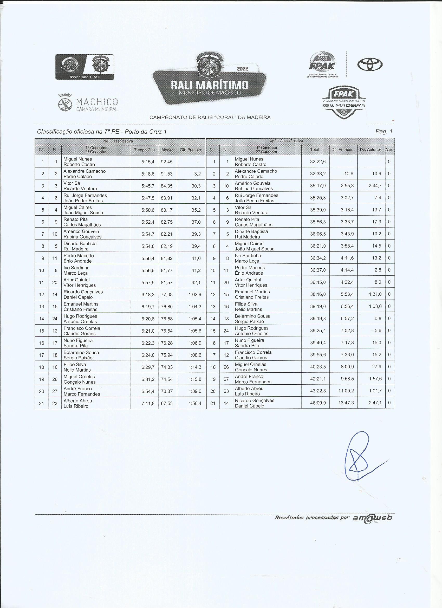 Classificação Oficiosa Na 7ª Pe Porto Da Cruz 1