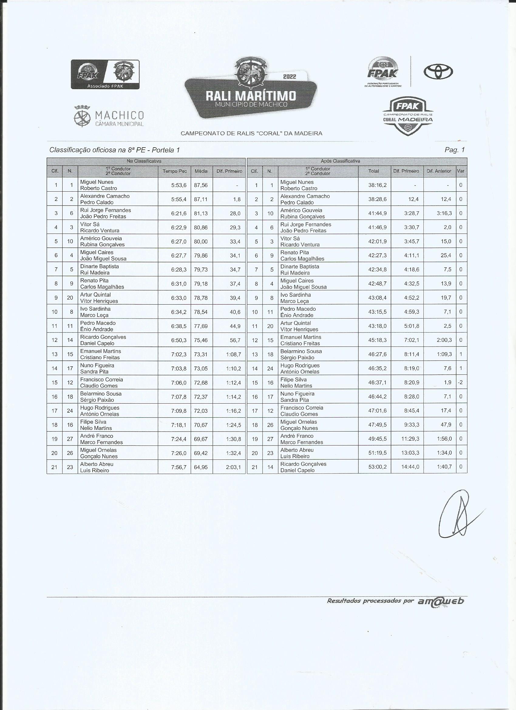 Classificação Oficiosa Na 8ª Pe Portela 1