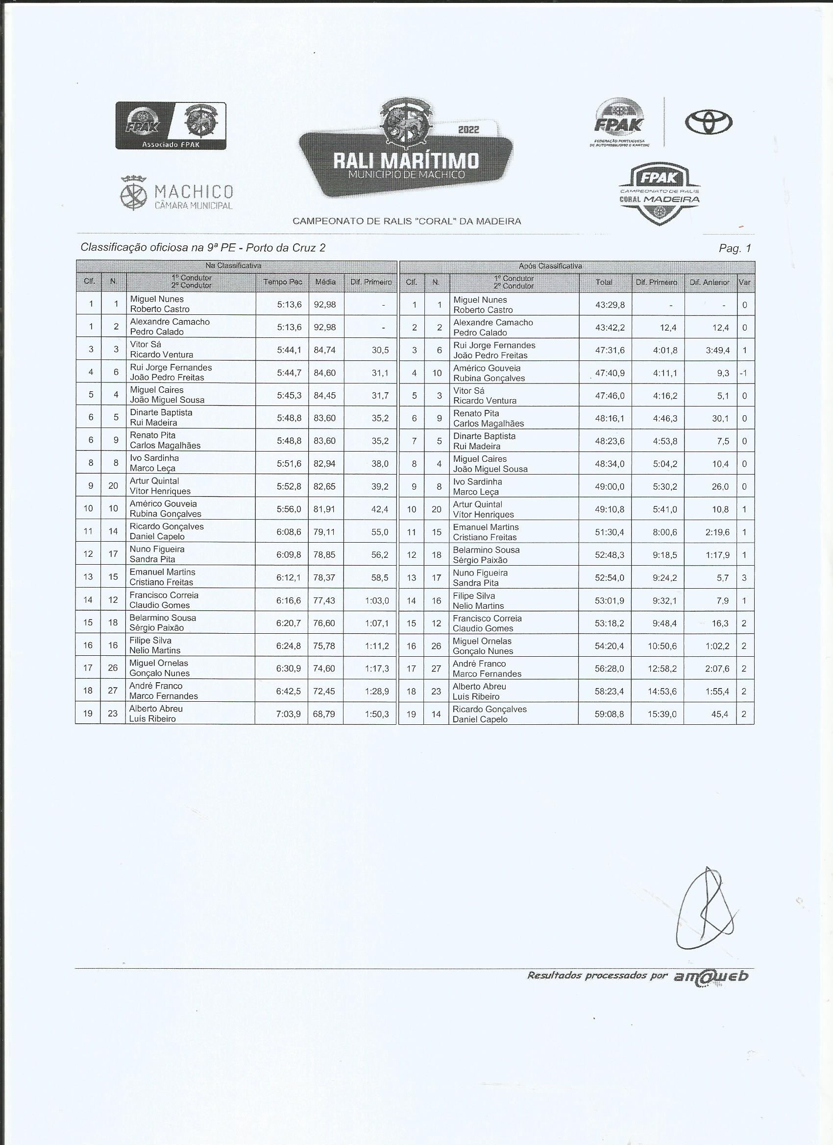 Classificação Oficiosa Na 9ª Pe Porto Da Cruz 2