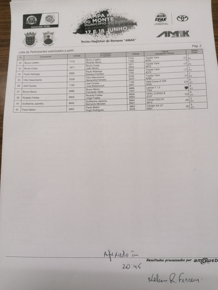 Inscritos Rampa Regional Do Monte Município Do Funchal 2022